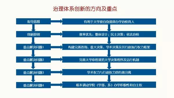 当来自大学外部的有利于一流大学建设的政策制度供给和物质资源供给问题得到解决之后,一流大学建设的得与失、成与败就取决于大学内部治理体系的现代化,大学内部治理体系的现代化惟有通过大学内部治理体系的创新才能得以推进。