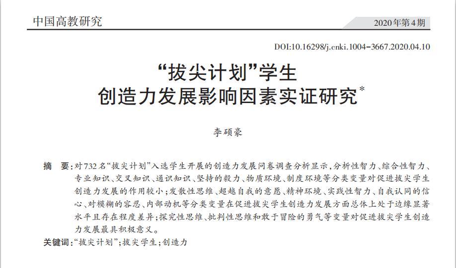 李硕豪:“拔尖计划”学生创造力发展影响因素实证研究