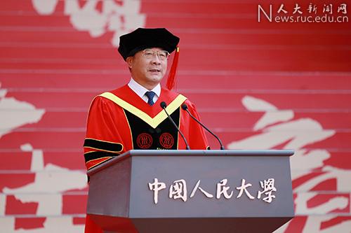 作为人民大学的毕业生,作为陕公精神的传承者,我希望你们无论走到哪里,都要有饮水思源、懂得回报的感恩之心,感恩党和国家,感恩社会和人民。我希望无论你们取得多大的成就,都要牢记以民族大义为念、以人民社稷为重,始终胸怀忧国忧民之心、爱国爱民之情,贯彻“立学为民、治学报国”的宗旨,把个人理想融入国家和民族的事业中。我更希望无论你们遇到多大的诱惑,都要学会明辨是非、保持定力、恪守正道,用勤劳的双手和诚实的劳动创造美好生活,在人生道路上走得更正、走得更远。