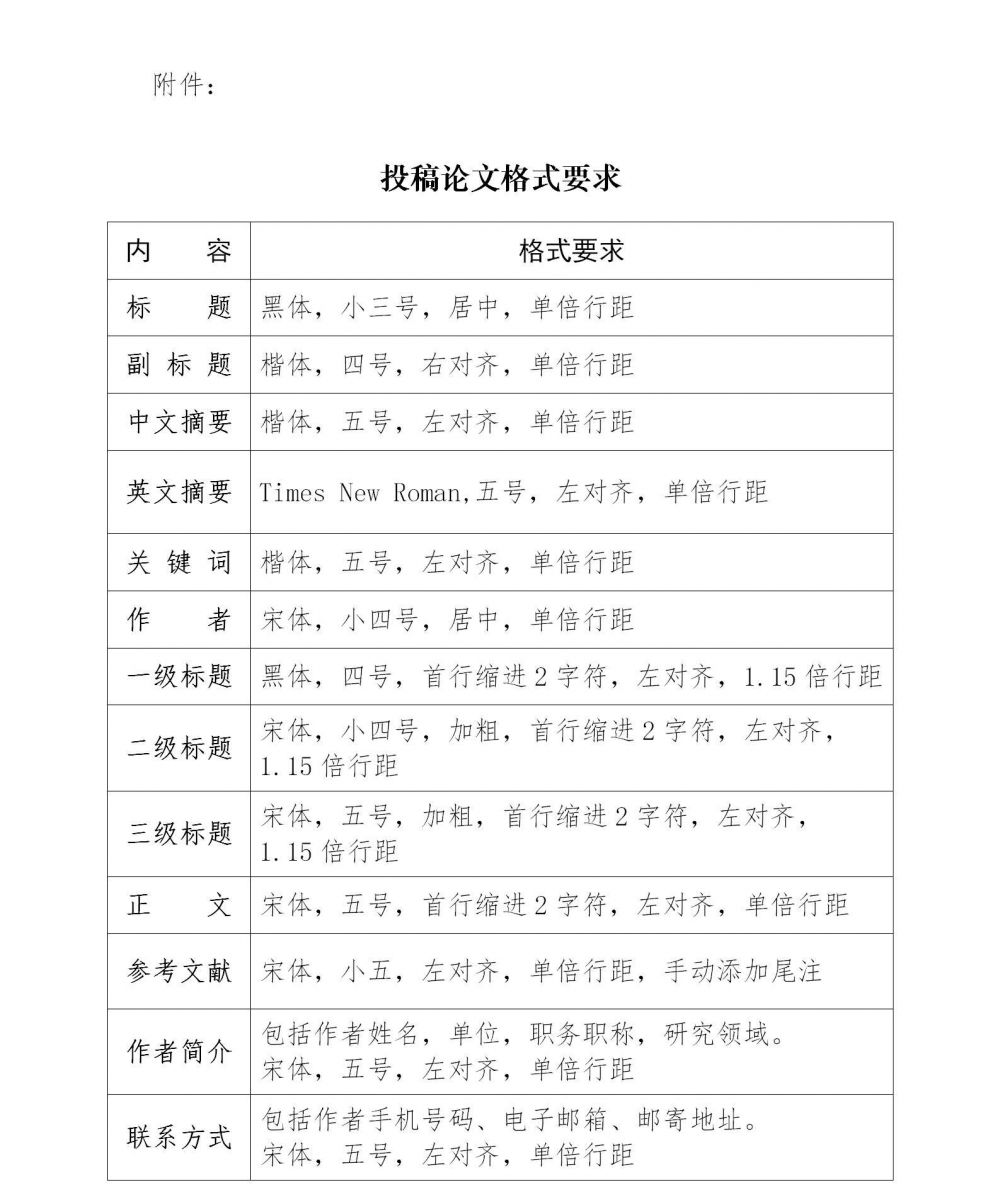 2.拟参会代表须围绕论坛主题及议题撰写学术论文,建议字数6000字左右,投稿论文格式要求见附件。请用电子邮件提交WORD文档,邮件主题和文件名称按照“第一作者姓名+论文题目”格式命名。