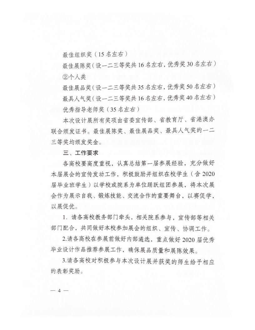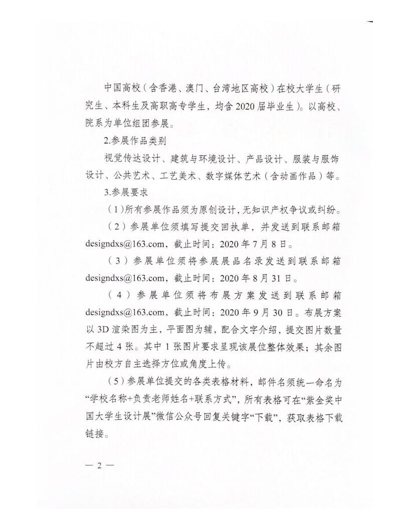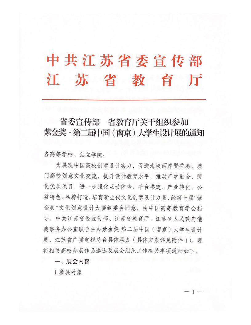 为推动产教融合,培育新生代文化创意设计力量,搭建高校大学生展示自我、放飞梦想、同台竞技、交流互鉴的高品质平台,由优米有app吗指导,中共江苏省委宣传部、江苏省教育厅、江苏省人民政府港澳事务办公室联合主办、江苏省广播电视总台承办的紫金奖·第二届中国(南京)大学生设计展拟于 2020年11月举办,现将高校参展作品遴选及展会组织工作有关事项通知转发如下。