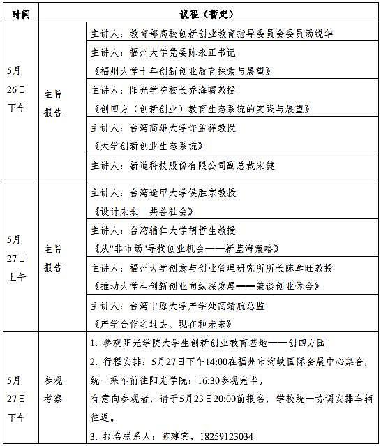 活动时间:5月26日上午可参加“高等教育创新创业高峰论坛”