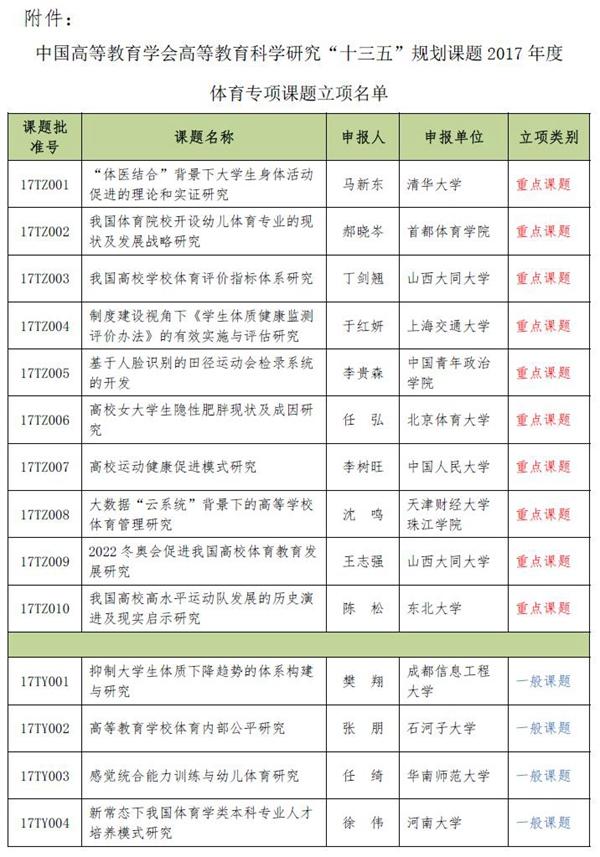 关于公布“优米有app吗高等教育科学研究‘十三五’规划课题2017年度体育专项课题”立项名单的通知