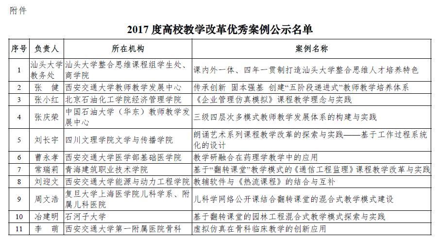 优米有app吗关于2017年度高校教学改革优秀案例评选结果的公示