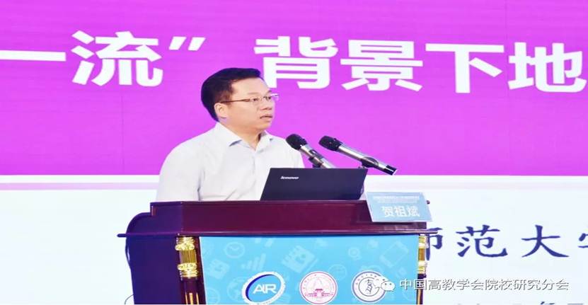 广西师范大学校长贺祖斌教授关于“‘双一流’背景下地方高校内涵式发展”的报告,围绕“双一流”建设与地方高校发展的关系,以及地方高校与高校内涵式发展关系等内容进行了介绍。